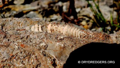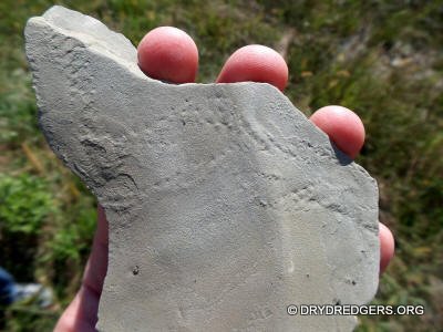 We found abundant quantities of the brachiopods Sowerbyella sp, Cincinnetina sp and Zygospira sp. but no photos to show for it. Here is a brachiopod just beginning to emerge from a shale layer.