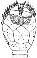 Although there are more than five species of cyclocystoids in the Cincinnatian, the most common is Zygocycloides magnus characterized by having a ring of 20 plates that alternate two big, two small.