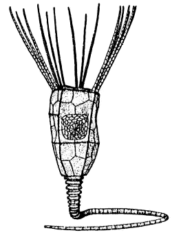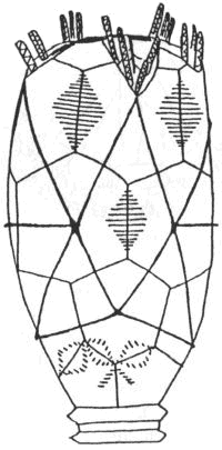 Glyptocystitid rhombiferans, commonly called cystoids, are common fossils locally in the Cincinnatian. They are characterized by a body, or theca, that has 19-20 plates, long thin feeding appendages called brachioles arising from the ambulacra, and a short flexible stem. Typically, only the theca is found as the brachioles and the stem quickly fall off after death of the animal. |