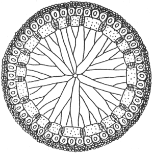 Cyclocystoids are one of the rarest of Cincinnati's echinoderms. They are characterized by a ring of heavy plates that have small bumps around the outside and a middle portion that has radial lines. Unfortunately they are small (about the size of a penny) and delicate. Typically all one finds preserved is the ring of plates.