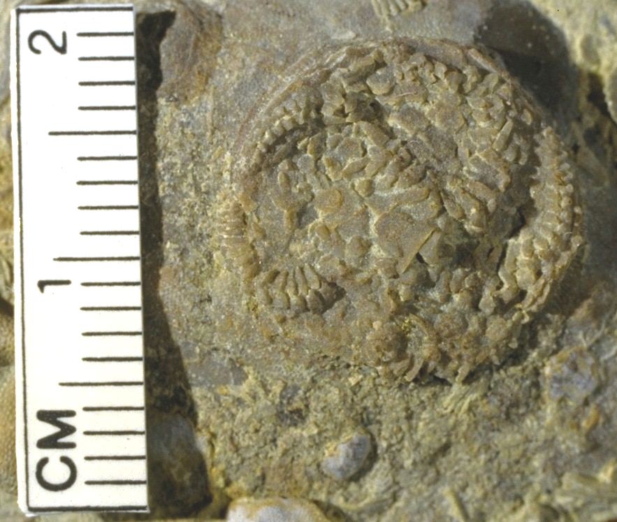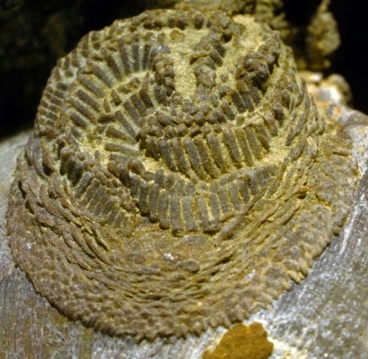 Multiple Edrioasteriods on a Rafinesquina Brachiopod.