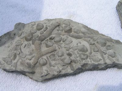 The Rock above is loaded with tiny brachiopods (Zygospira modesta)