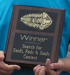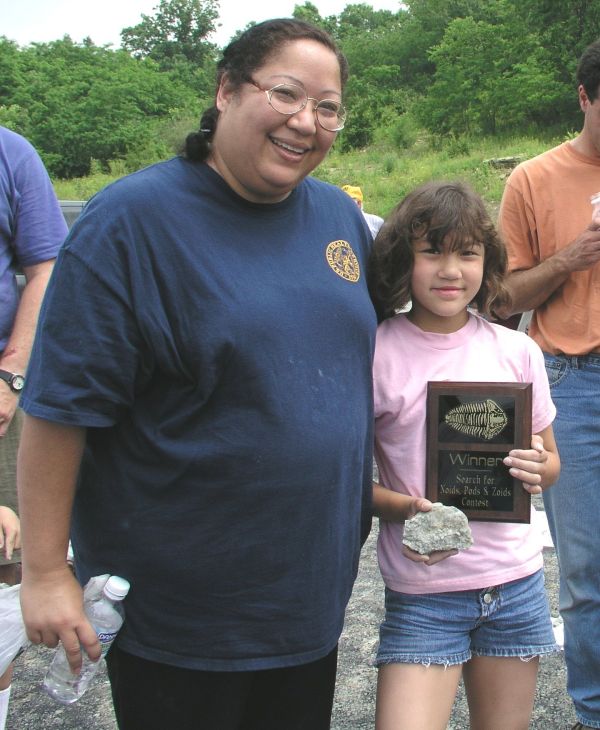 Second place went to a young woman who found a different inarticulate brachiopod, Petrocrania scabiosa, in a cluster of four! ( Click HERE for a picture of the winning specimen (compliments of Cindy S.) The winner is pictured below. Congratulations!