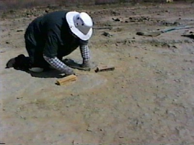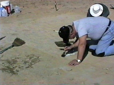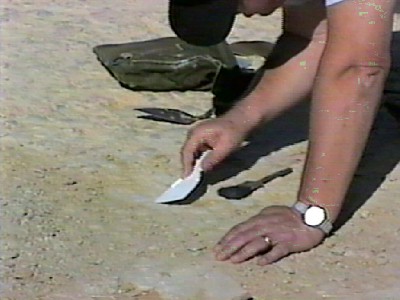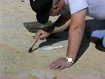 On Saturday, the Edrio Dig continued as Tom Bantel, Charlotte Cox, Rich Fuchs and Bill Heimbrock pick away at the dried mud and flaky shale that rested on top of the Rafinesquina bed.