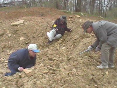 We continued our tour of the Corryville Formation with a second site that was once a hill cut coldesac. This one was also famous for good quantities of Flexicalymene trilobites before the hill had been razed this past year. This site has also been weathered over the winter and the expectation is for nice specimens of trilobites as well as crinoids.