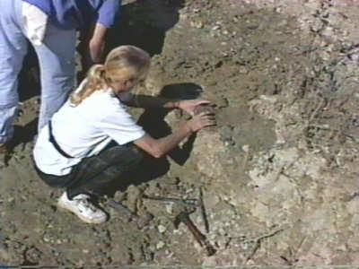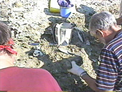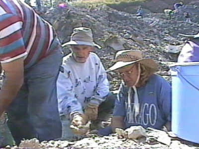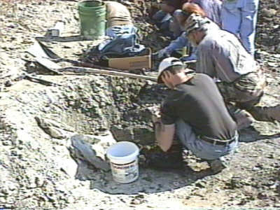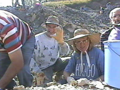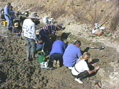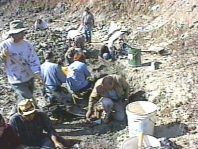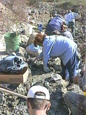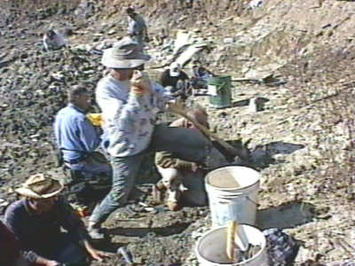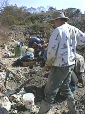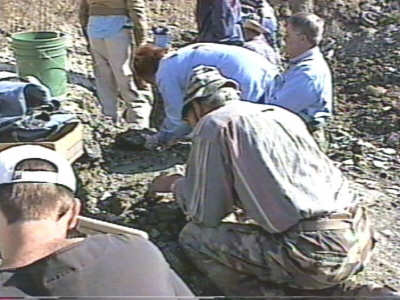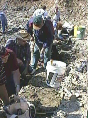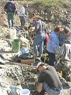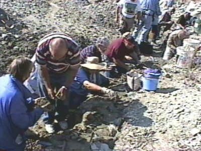 Don Bissett removes some overburden to expose the trilobite layer for additional diggers.