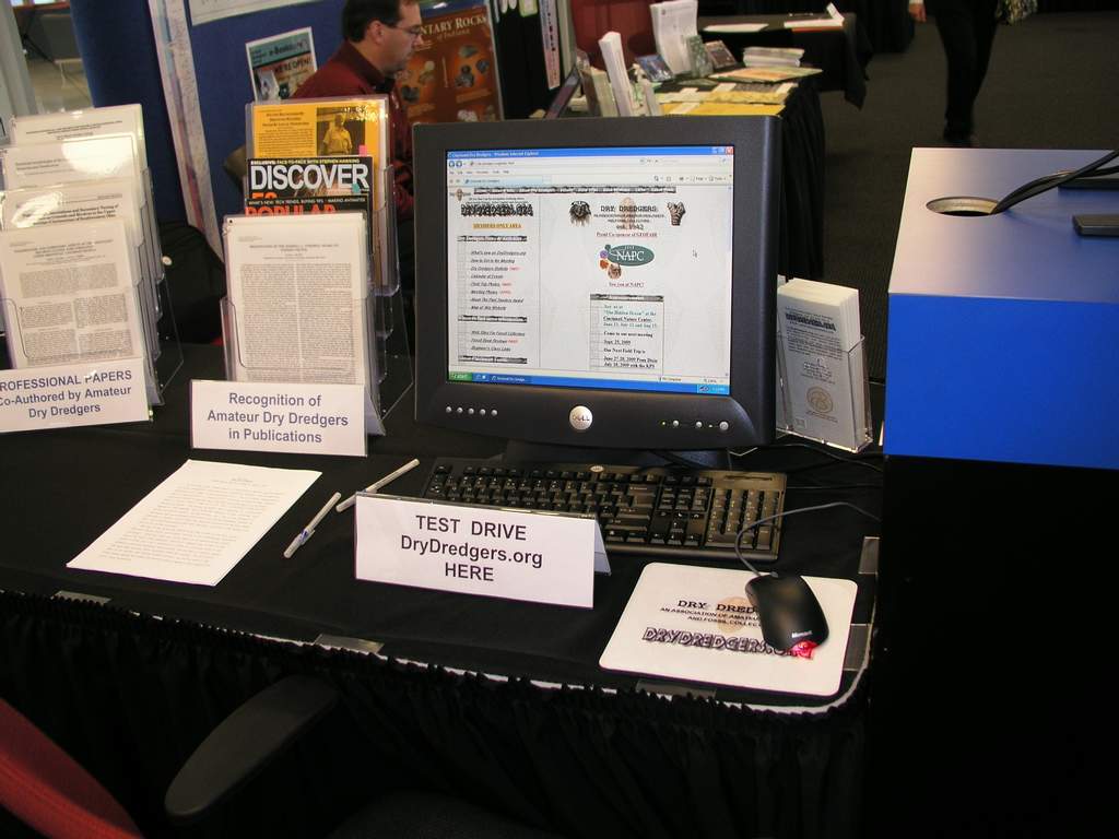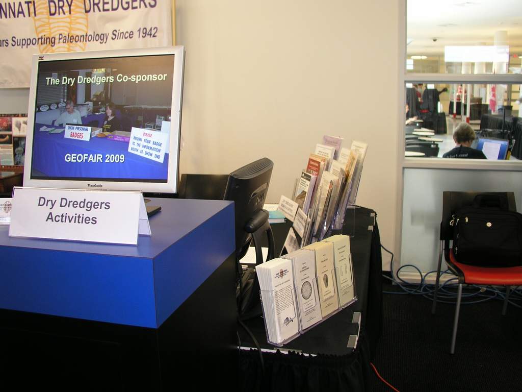 The table included a computer that let people test drive the Dry Dredgers web site (drydredgers.org) and another computer that showed a slide show of what the Dry Dredgers do to support paleontology.