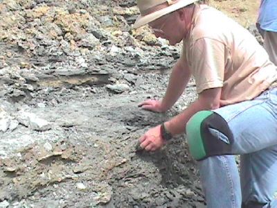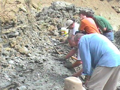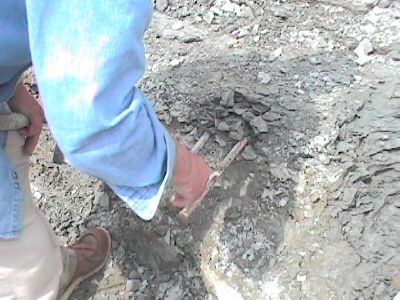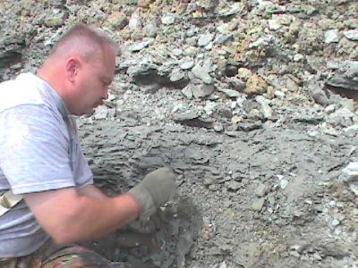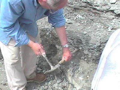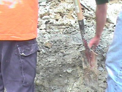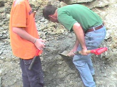 The start of the digging process is to remove the dirt and clay from above the desired layer. This overburden is removed with a shovel. Don and Dan were there to show us exactly where the layer we want is.