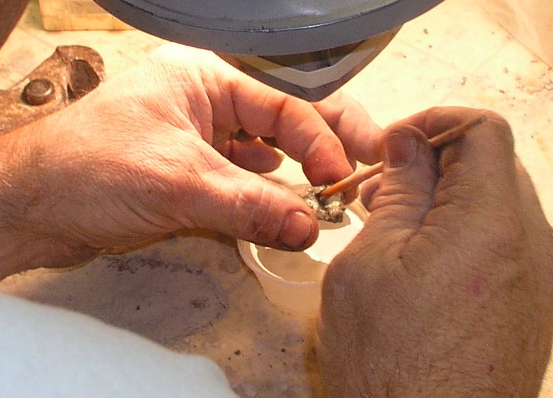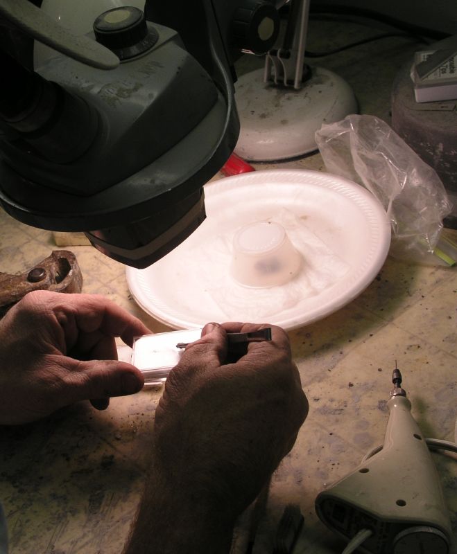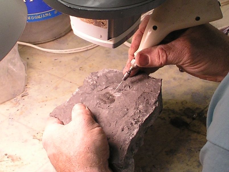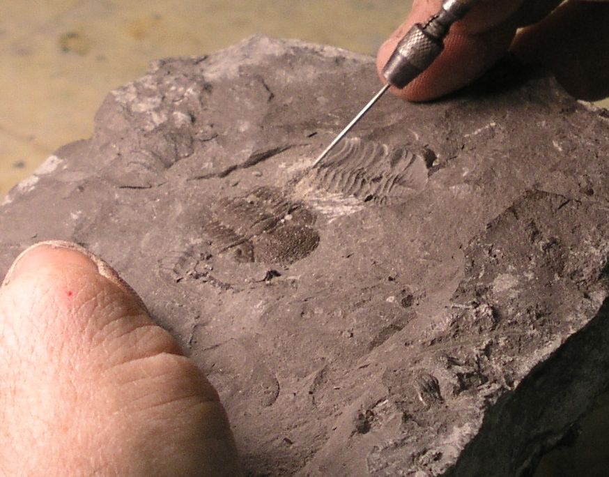 Cleaning a Phacops Trilobite