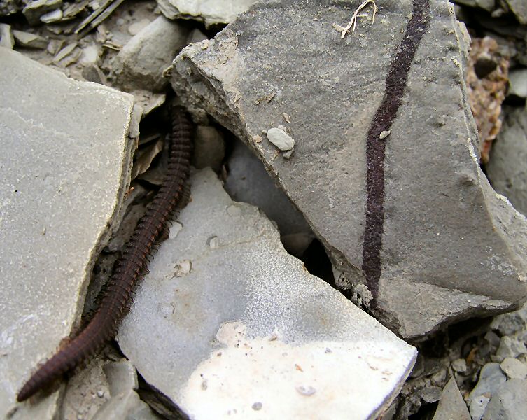 fossils. Shown below, a fossil hunter noticed that the millipede blends right