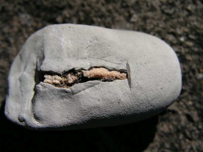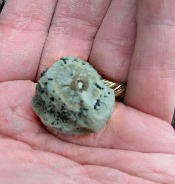 fossil-like objects. The Dry Dredgers found this "crinoid stem"