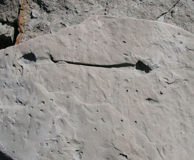 Another interesting trace fossil we found is this one, below, where the holes