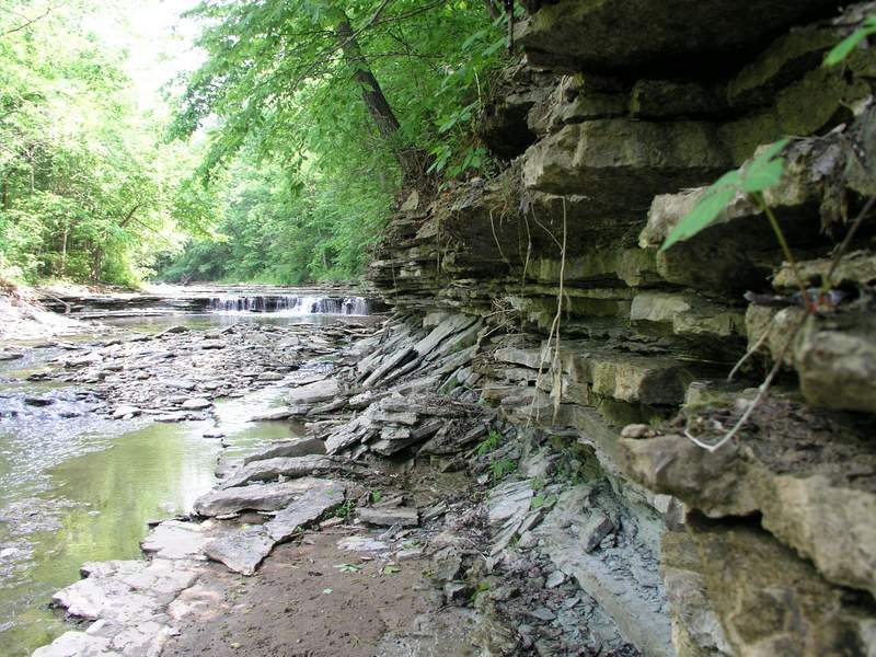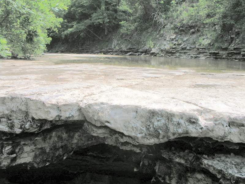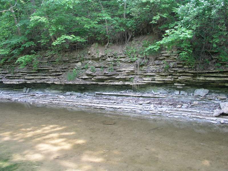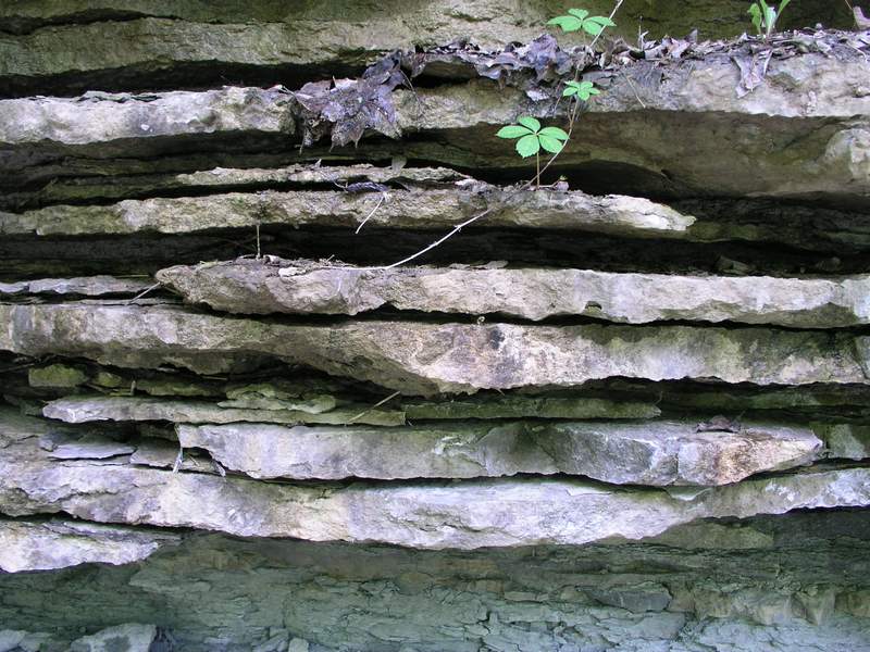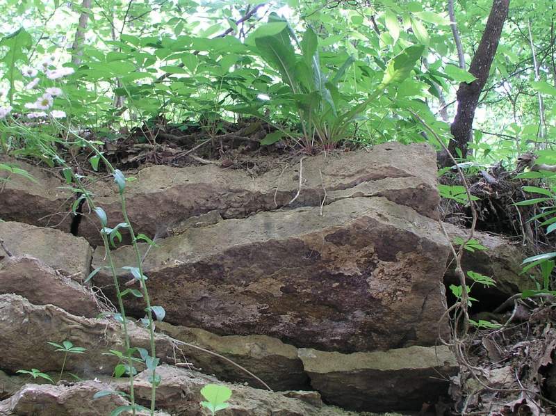the hard limey rock layers, had been long washed away, leaving rock layers with