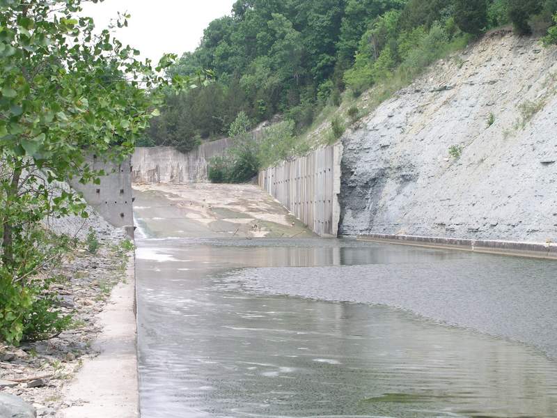 and waterway below the dam. The site was hard to find because there were no signs