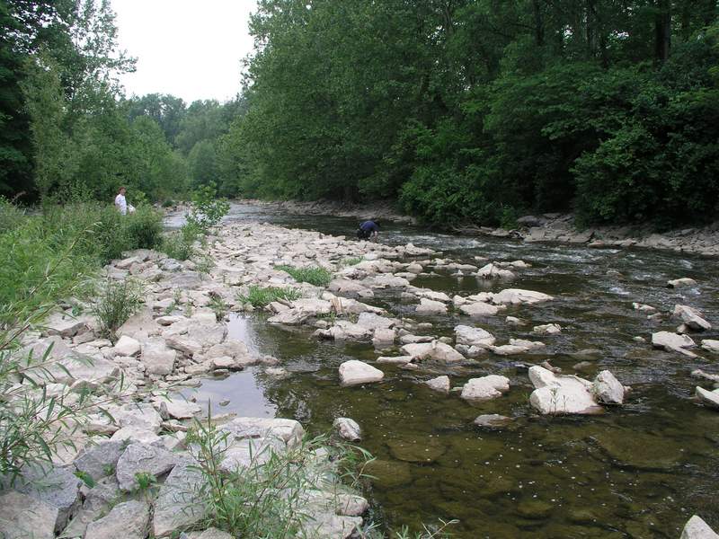 The waterway sides were steep, but we collected mostly at the