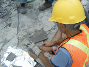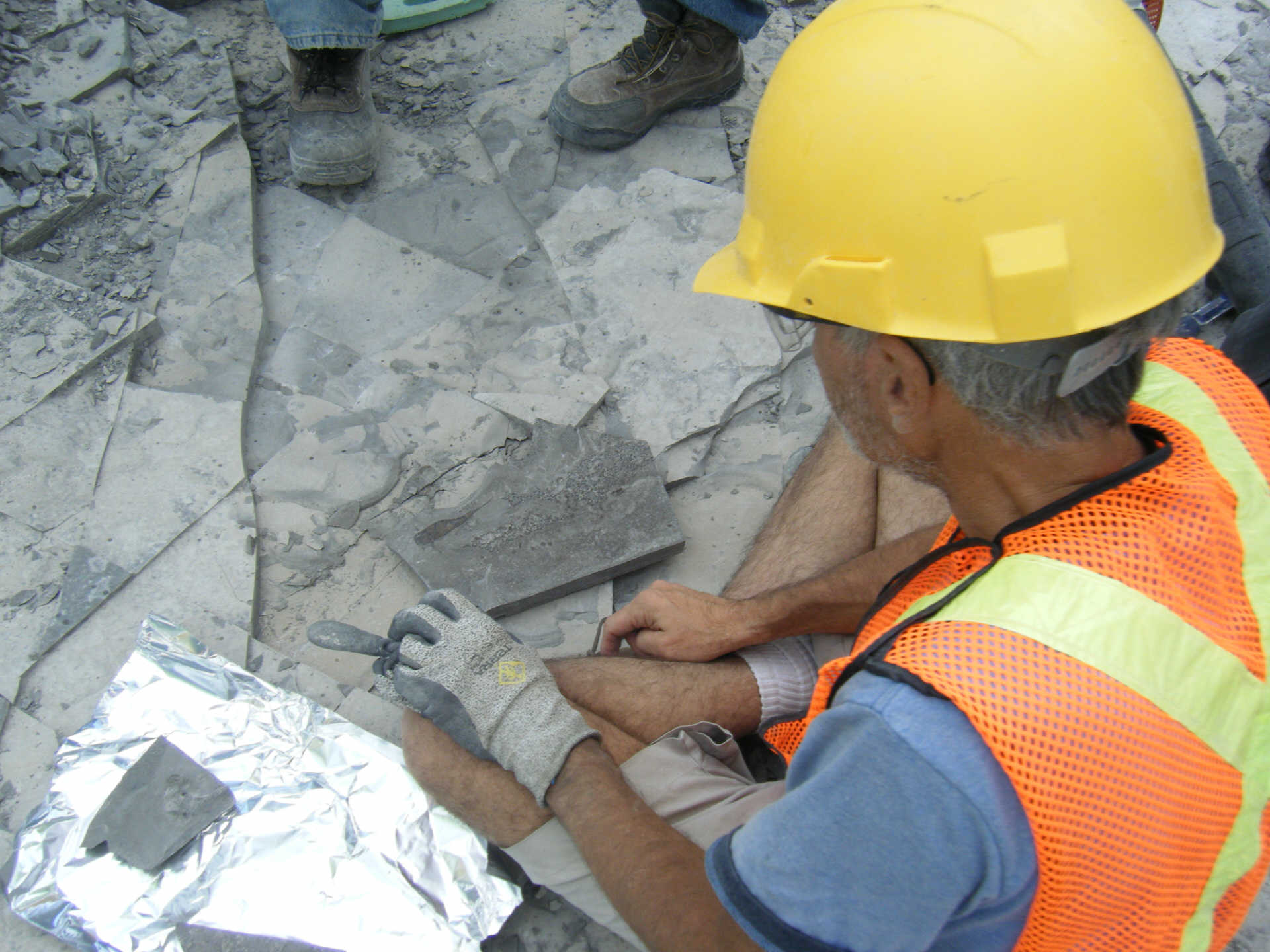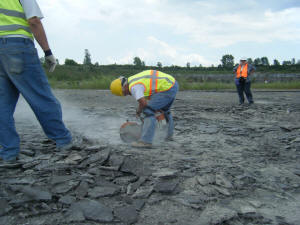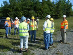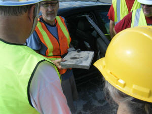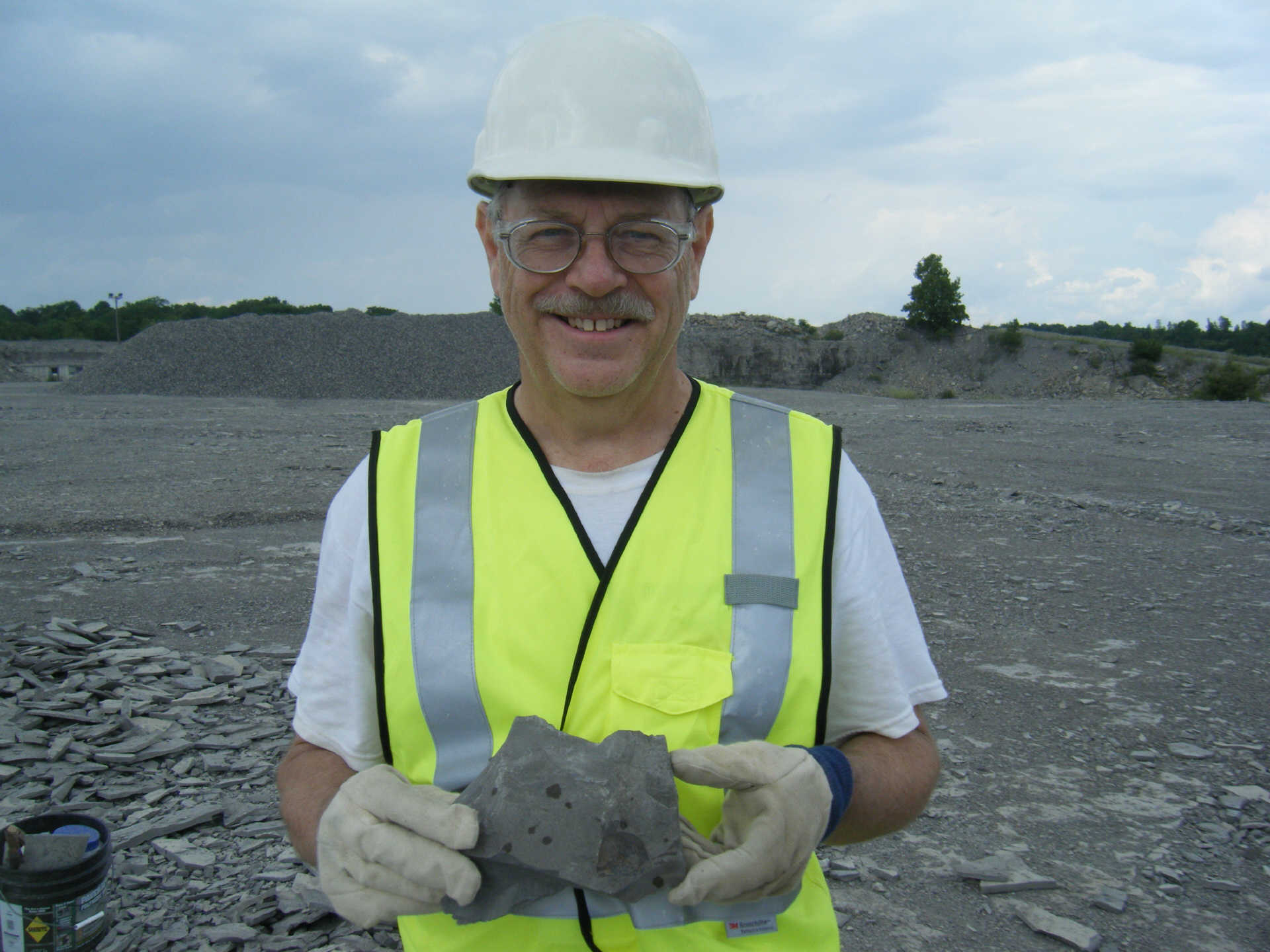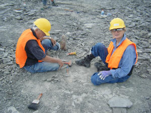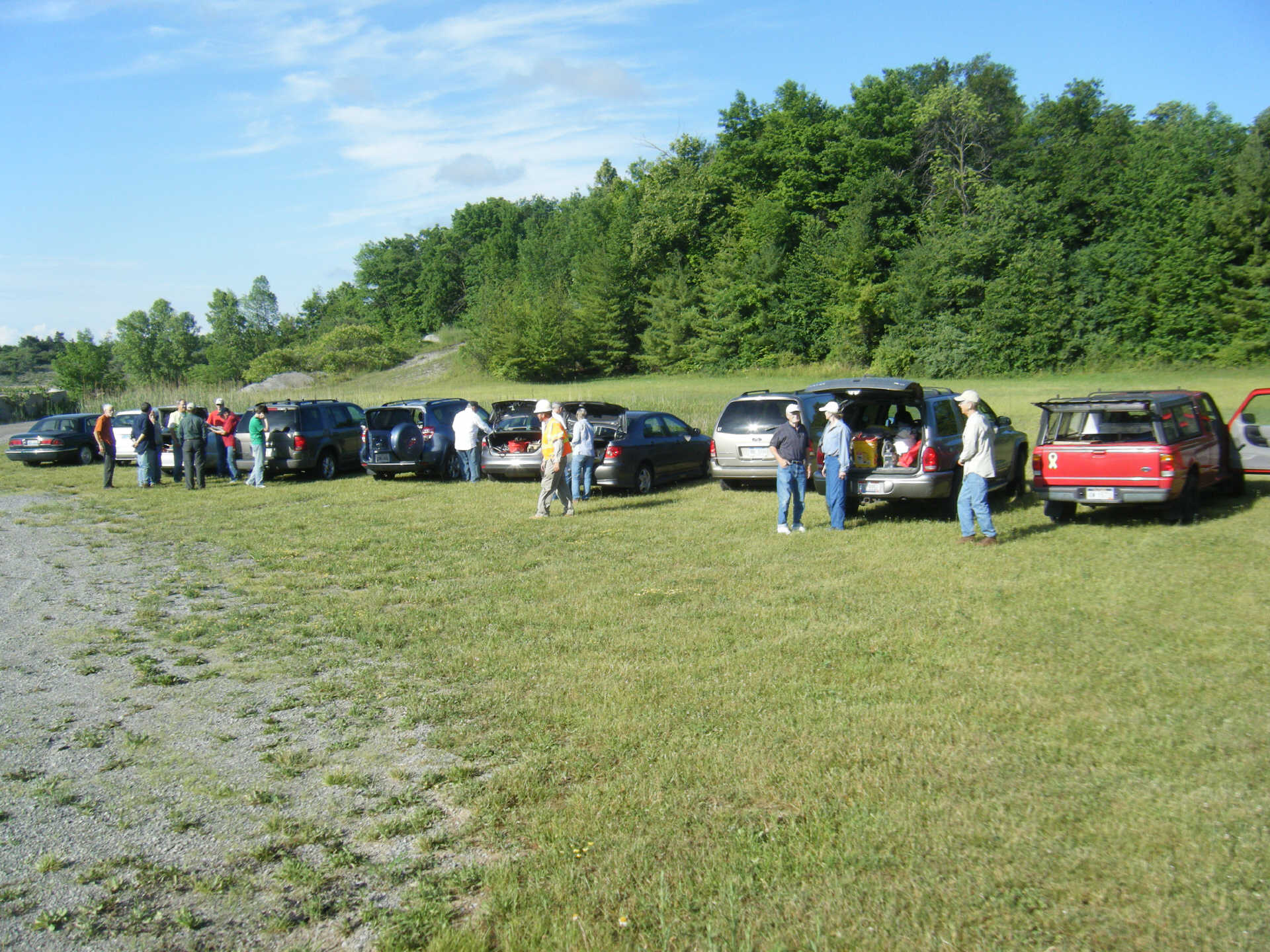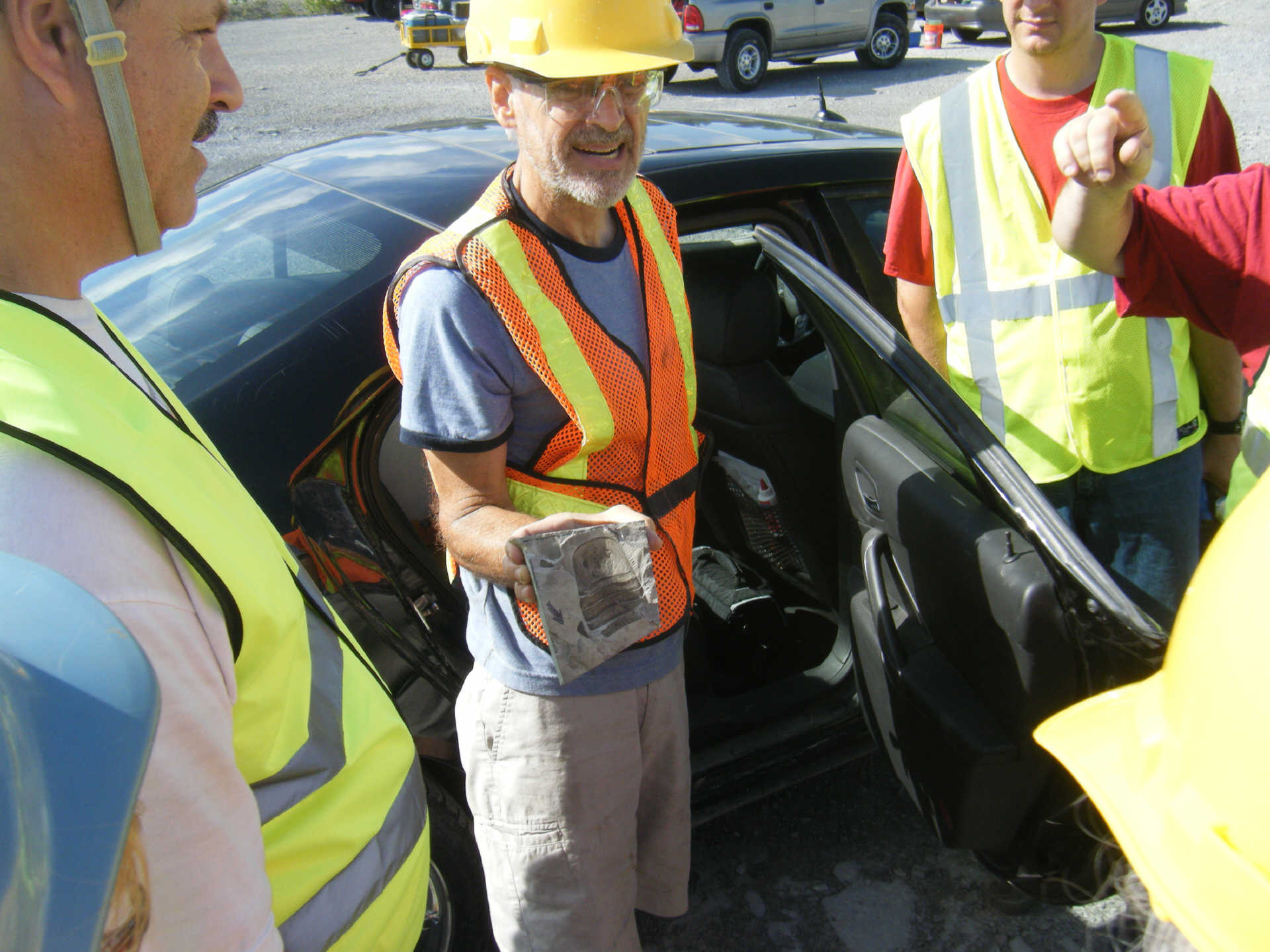Approximately 20 of us went to the Ridgemount Quarry in Fort Erie, Ontario, Canada on Friday. There was a light drizzle when we met for breakfast, but skies mostly cleared by the time we crossed the border. Other than a few momentary “mists” (which actually felt good) conditions remained dry at the site. With the assistance of two Canadian amateur paleontologists on site, we were soon digging for Eurypterids. While none of the U.S. attendees found any whole ones, one of the Canadians did – proving they WERE there. This type of excavation was very different from what most of us were used to, so the learning experience was very beneficial. Everyone found something worth bringing home, so it was a good day overall.