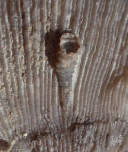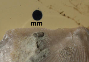 This is a clam called Caritodens which was preserved on the bottom of an encrusting bryozoan. (bottom and top - next 2 pics)