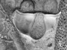 Inverted Cryptolithus glabella. The right cheek in this example is partially missing. The interior view, as shown, is uncommon because the glabella is so fragile. |