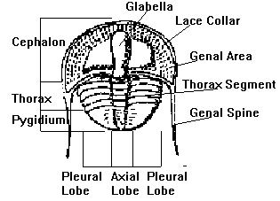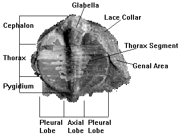 The trilobite anatomy chart was done with a genuine Cryptolithus tessellatus courtesy of Evelyn Eastabrooks. The drawing in the anatomy chart is by Rich Fuchs.. The Cryptolithus fragments are from the collections of Bill Heimbrock. The Cincinnati Trilobite Fragment Identifier was written and produced by Bill Heimbrock.