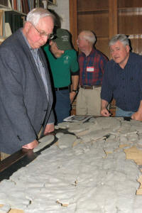 Ron fine covered the entire first row desk top with more pieces from his Kope mystery bio mat material. This was moved to UC�s labs for further study and joined the material Ron brought last month.