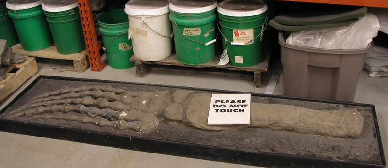 Glenn opened the wooden box in the center of the collections area. It contained an ichthyosaur - Sthenopterygius quadrissicus from the Lower Jurassic (Toarcian) of Holzmaden, Germany.