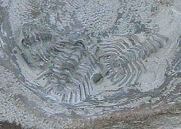 These excellent specimens of the trilobite Meadowtownella crosotus (suspected by some to be Meadowtownella crosotus) were found by John Tate on the underside of a coned bryozoan called Prasapora simulatrix. This fossil is from the Southgate member of the Latonia (Kope) Formation and is from a hill cut site in Northern Kentucky. Specimens of this trilobite are often found by turning over coned bryozoans found in the Southgate.