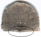Concave pedicle valve Convex brachial valve with hinge line circled