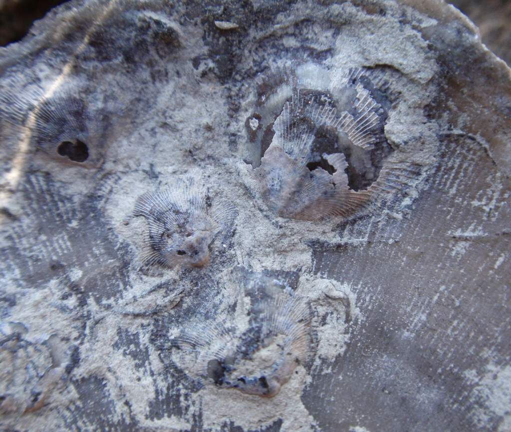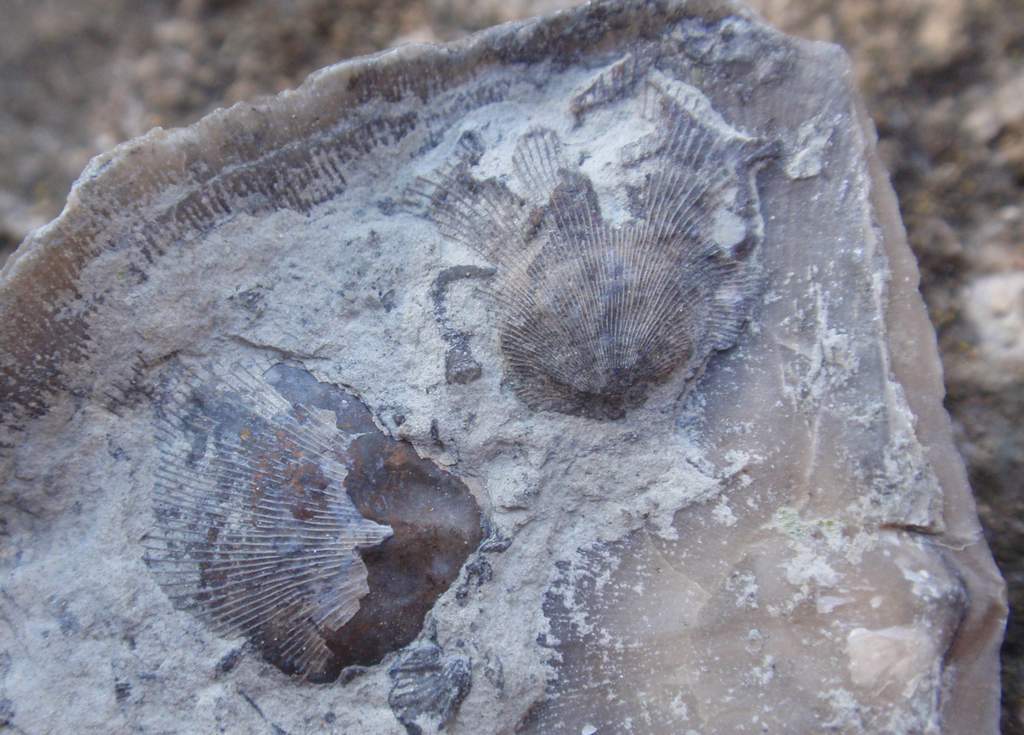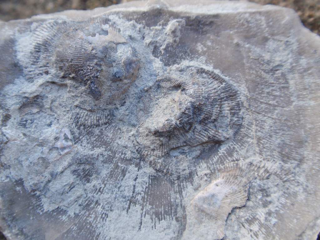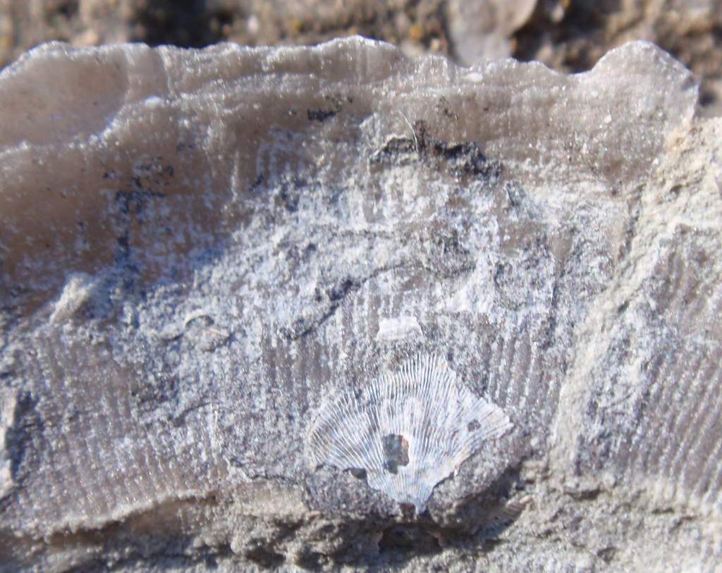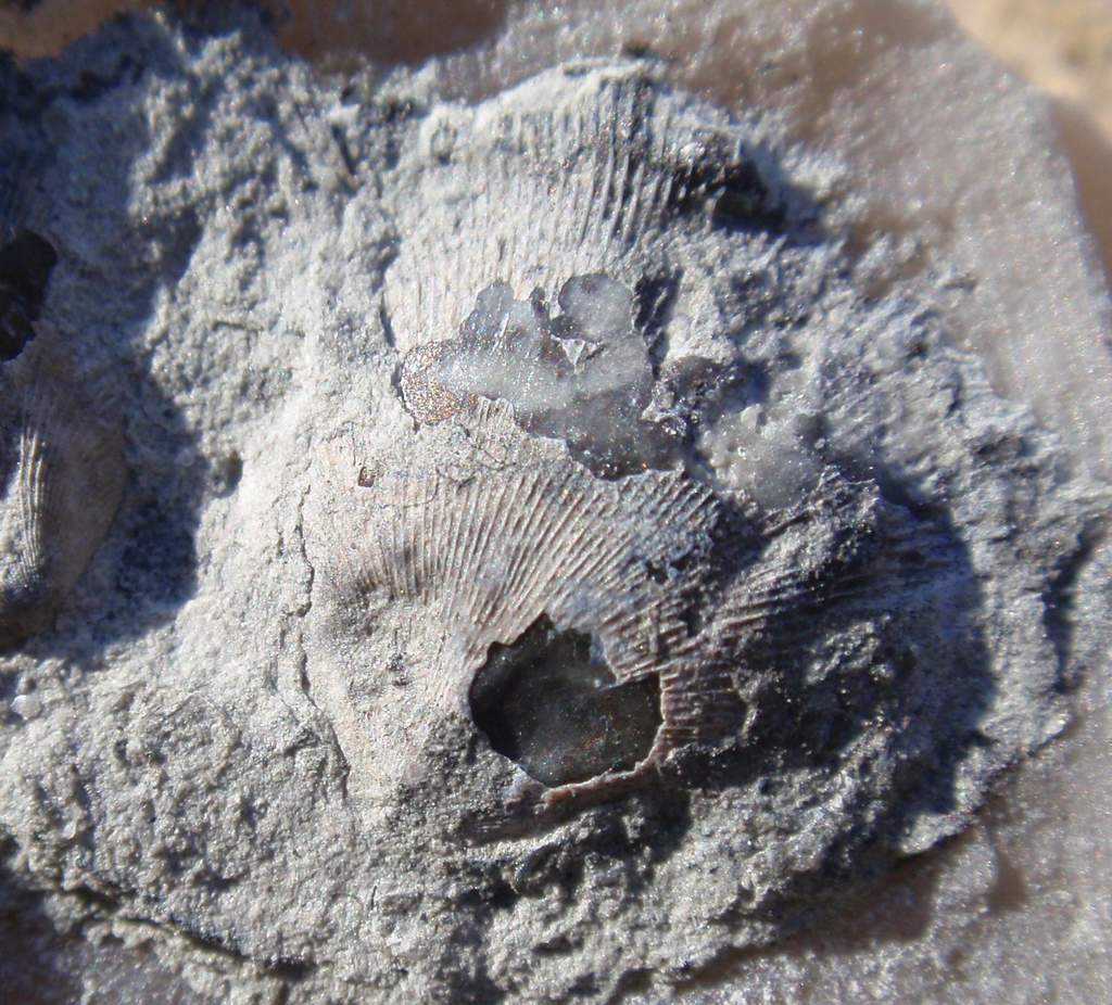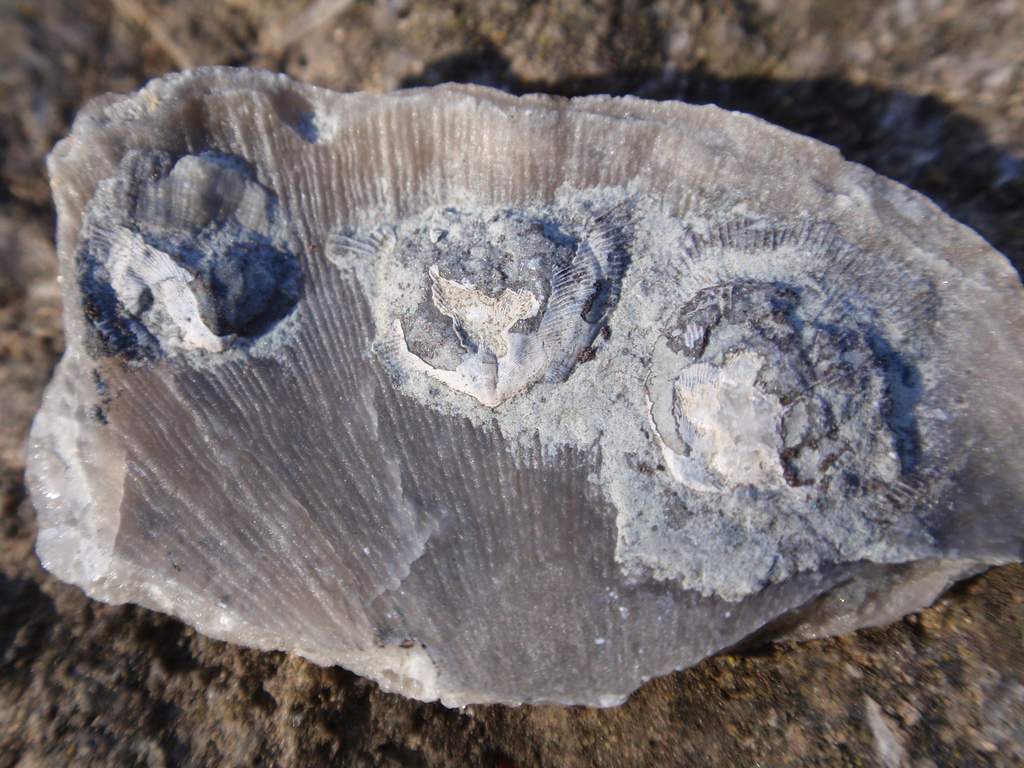Another reason to examine so many photos is to become familiar with what this fossil looks like more typically when they are found. Photos of fine museum specimens may not help you identify examples in the field, since you are likely, as the photos below demonstrate, to find partials and fragments of the Schizocrania valves.