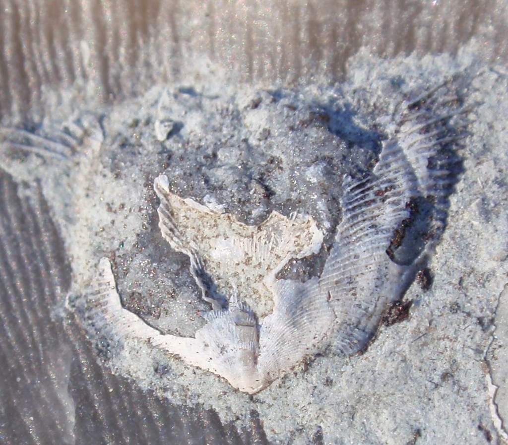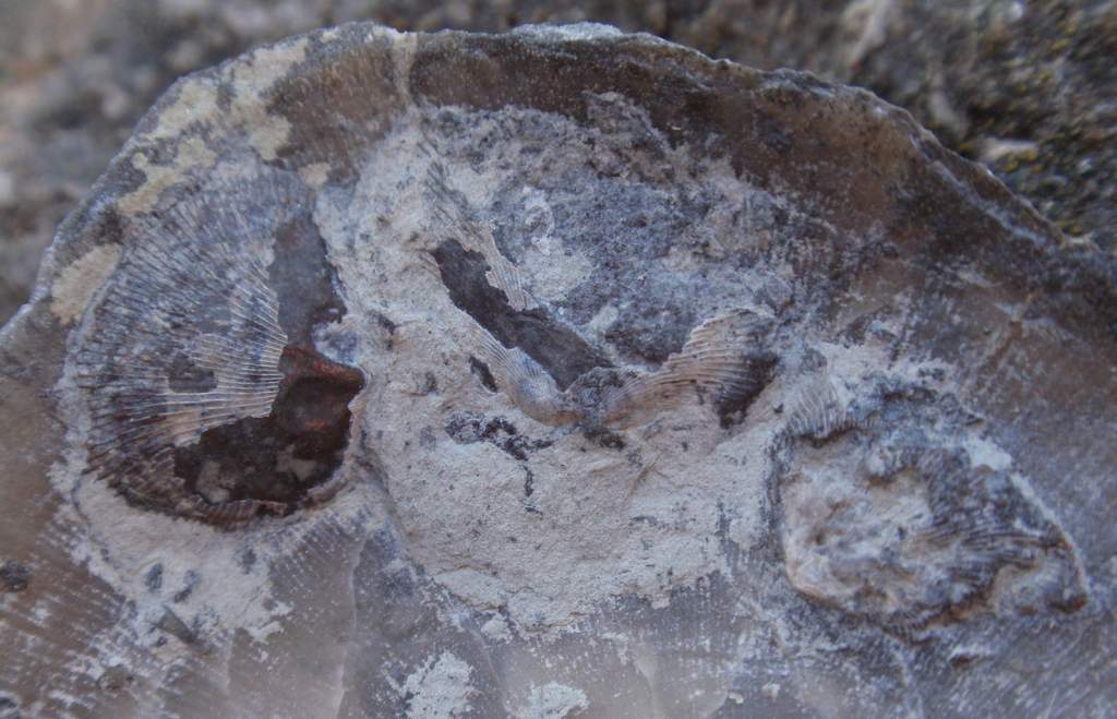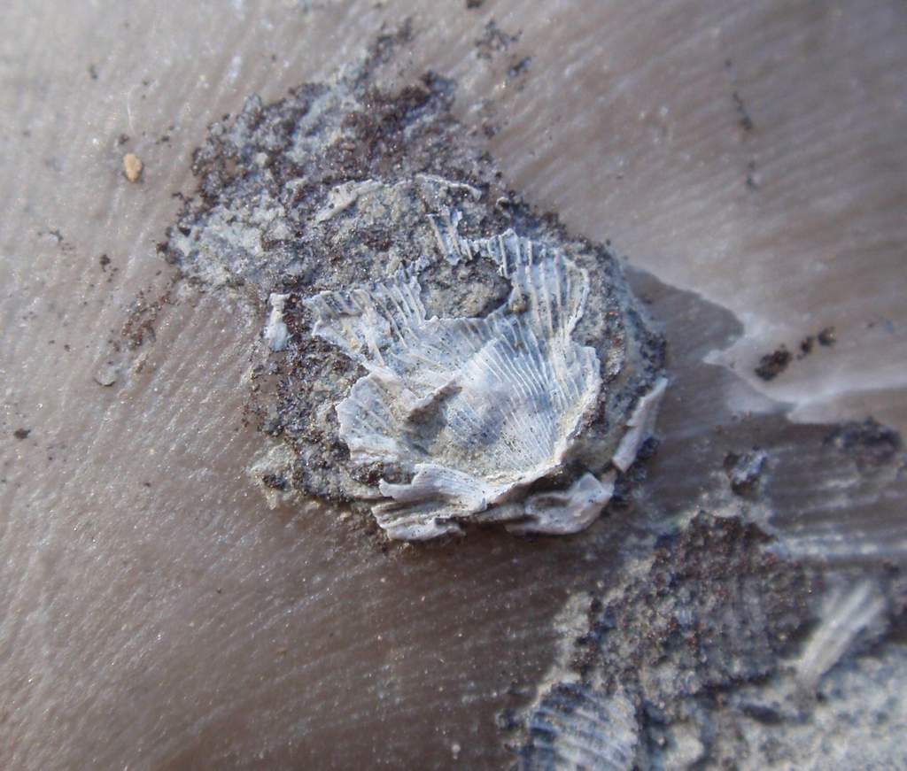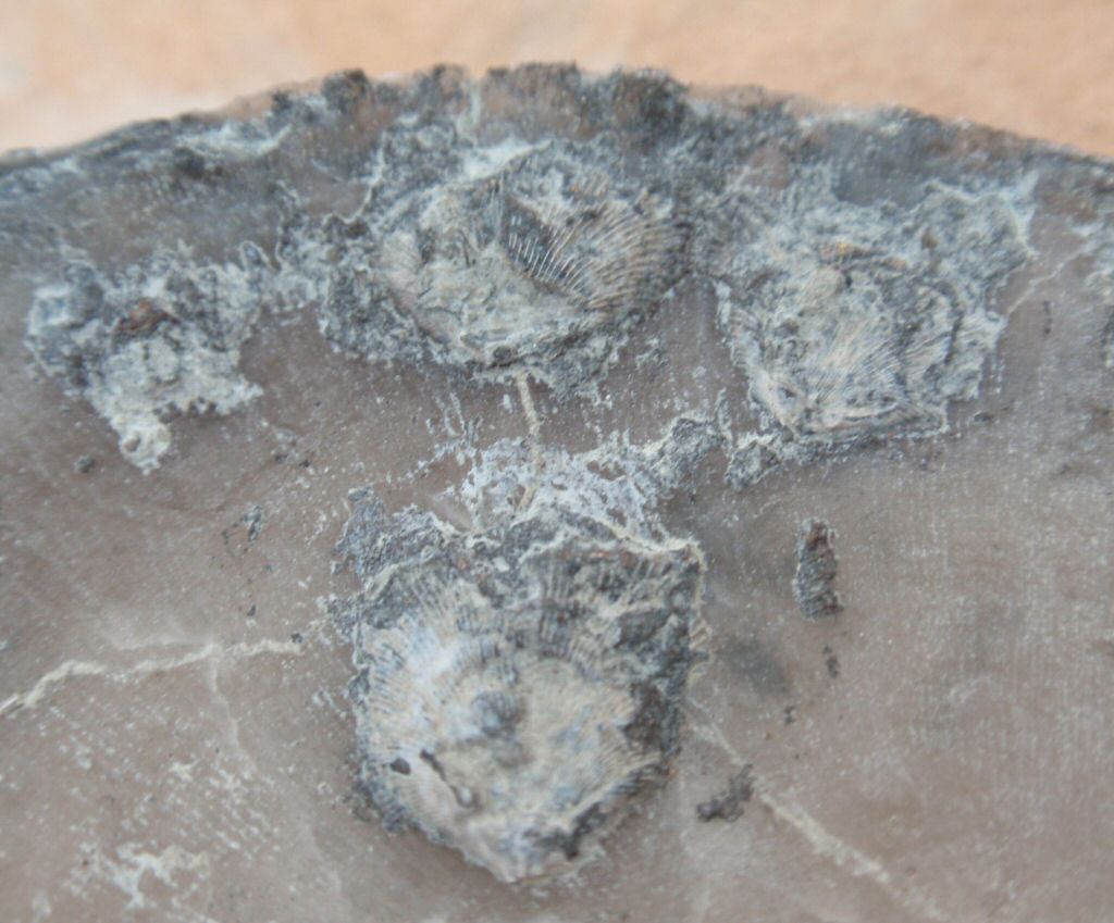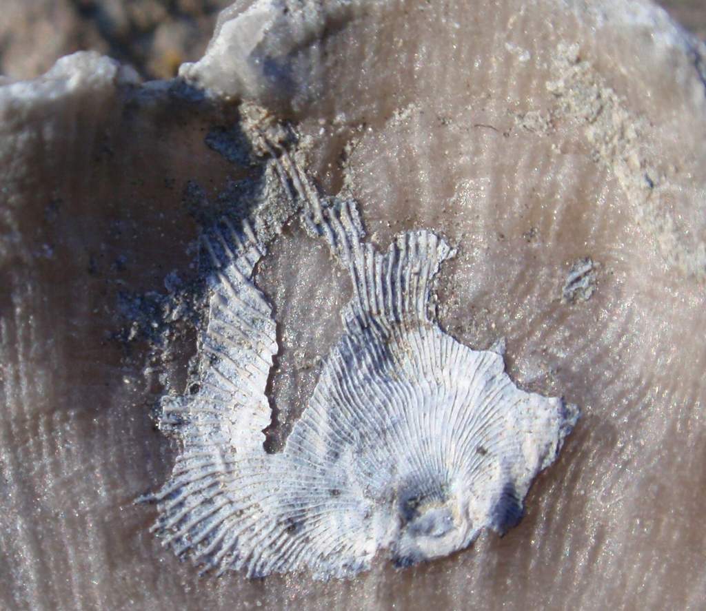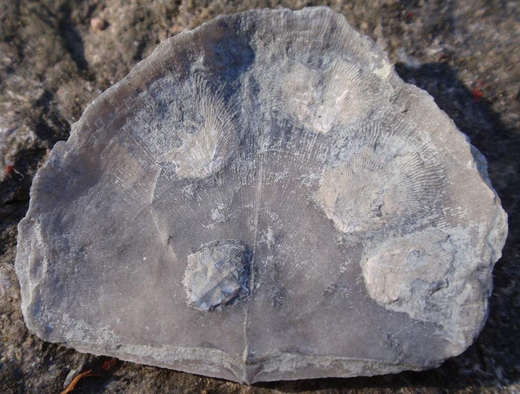 Another reason to examine so many photos is to become familiar with what this fossil looks like more typically when they are found. Photos of fine museum specimens may not help you identify examples in the field, since you are likely, as the photos below demonstrate, to find partials and fragments of the Schizocrania valves.