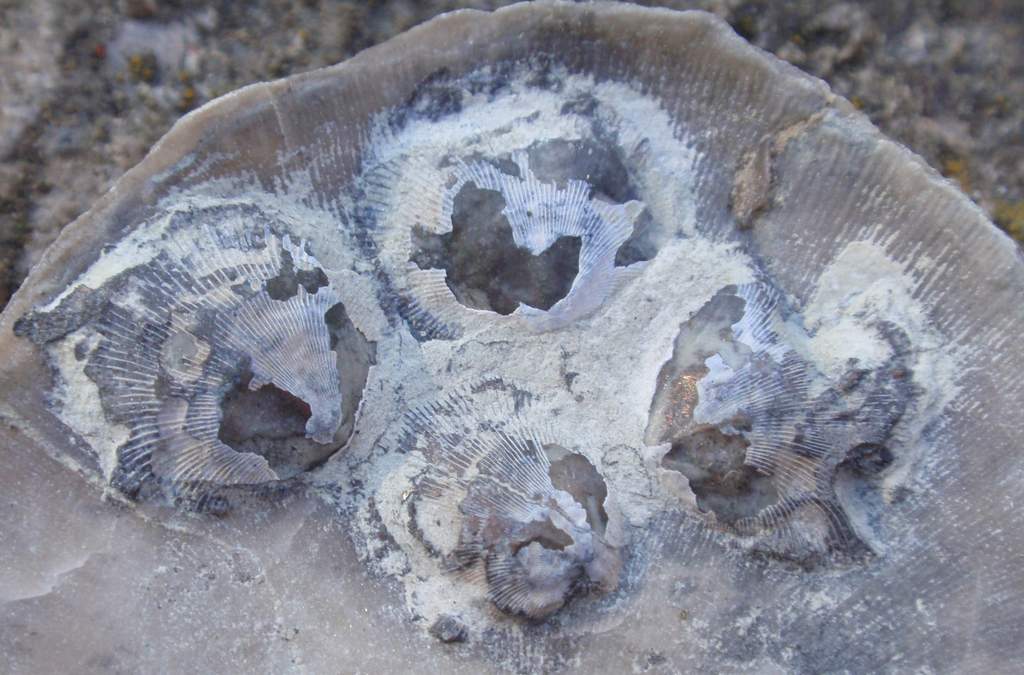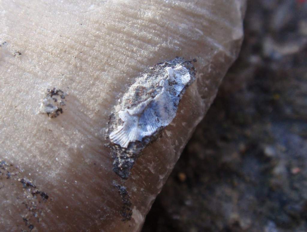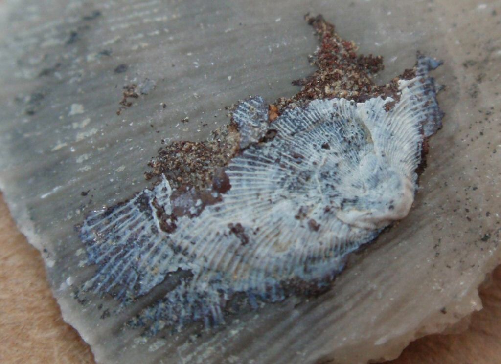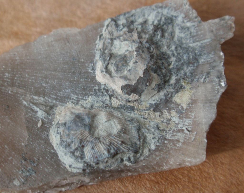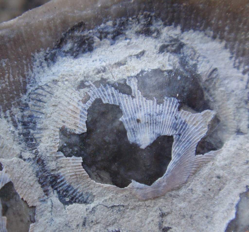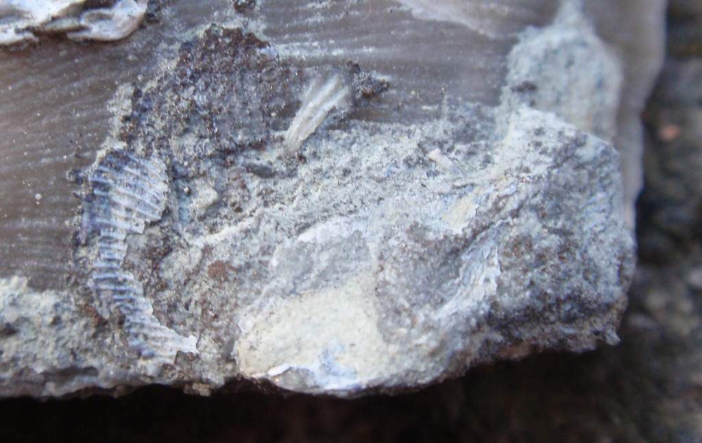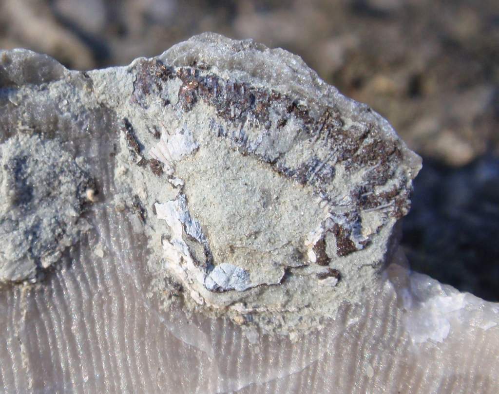Another reason to examine so many photos is to become familiar with what this fossil looks like more typically when they are found. Photos of fine museum specimens may not help you identify examples in the field, since you are likely, as the photos below demonstrate, to find partials and fragments of the Schizocrania valves.