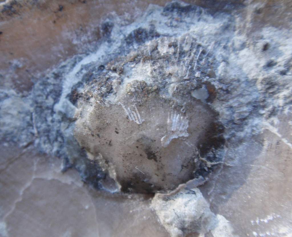 The reason for showing so many photos of imperfect specimens is to demonstrate the many attributes of Schizocrania. One consideration is their placement on the valves of Rafinesquina. It seems they were preferring to live near the edges of the values as these localities may be better for sharing the food source of the Rafinesquina. It may therefore help us identify the life position of Rafinesquina.