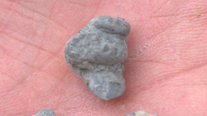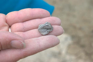 While waiting at the designated meeting place, members show off their fossil finds and share collecting information.